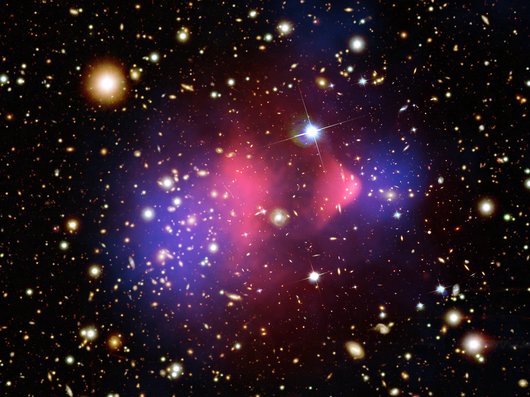 mehr dazuEinige hunderttausend Milliarden Sonnenmassen wiegt der Bullet-Cluster, einer der interessantesten Galaxienhaufen, die wir kennen. Allein dieses Objekt gibt uns tiefe Einblicke in die Bestandteile unseres Universums: Galaxien, heißes Gas, und dunkle Materie. Für diese Forschung nutzen wir verschiedene Teleskope: das Mikrowellen „South Pole Telescope“ am Südpol, das Blanco-Teleskop in Chile, und…