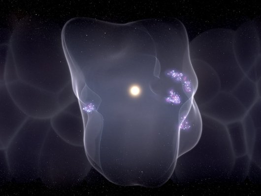 mehr dazuUnser Sonnensystem befindet sich im Zentrum einer großen Blase aus heißem, dünnem Gas. Neueste Beobachtungen zeigen, dass diese so genannte lokale Blase in den letzten 14 Millionen Jahren durch die Explosion von 14 massereichen Sternen entstanden ist. Diese gewaltigen Sternexplosionen drückten das umliegende interstellare Gas vom Explosionszentrum aus nach außen und erzeugten so einen leergefegten…