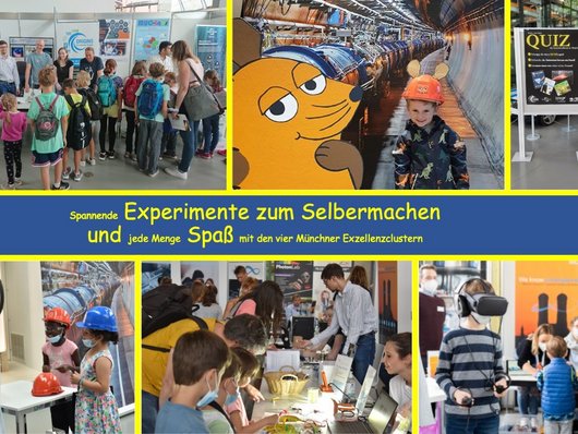 mehr dazuDie vier Münchner Exzellenzcluster präsentieren sich am Maus-Türöffner-Tag, 03.10.2022 von 09:00 bis 17:00 Uhr, gemeinsam im neuen Science Congress Center Munich (GALILEO) am Garchinger Forschungszentrum. Am Gemeinschaftsstand gibt es für Kinder und Jugendliche spannende Experimente zum Selbermachen, viele Infos rund um die Cluster und ein spannendes Quiz mit tollen Preisen!
