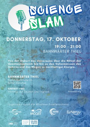 Lust auf einen Abend voller Wissenschaft in entspannter Bar-Atmosphäre? Am Science Slam im Bahnwärter Thiel geben junge Wissenschaftlerinnen und Wissenschaftler Einblicke in Münchens Spitzenforschung: Von der Geburt des Universums über die Rätsel der Quantenmechanik bis hin zu den Geheimnissen des Gehirns und den Wegen zu nachhaltiger Energie.