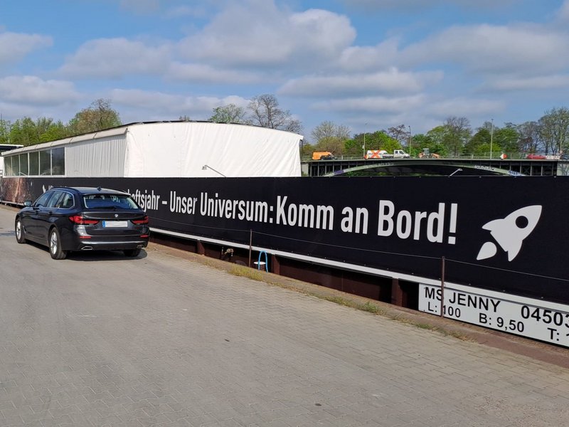 Die MS Wissenschaft ist ein schwimmendes Science Center mit Exponaten zum Ausprobieren und Mitmachen. ORIGINS war mit dabei, als sie im Rahmen des ,,Wissenschaftsjahrs 2023 – Unser Universum" vom 9. Mai bis zum 27. September 2023 quer duch Deutschland, von Berlin bis Nürnberg und weiter nach Wien, schipperte. In rund fünf Monaten besuchte das Ausstellungsschiff 33 Städte und wurde von über 103.000 Interessierten besucht.